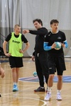 Pildil: Janar Mägi (keskel) jagamas koondise mängijatele teadmisi (Foto: Helin Potter/Eesti Käsipalliliit)